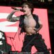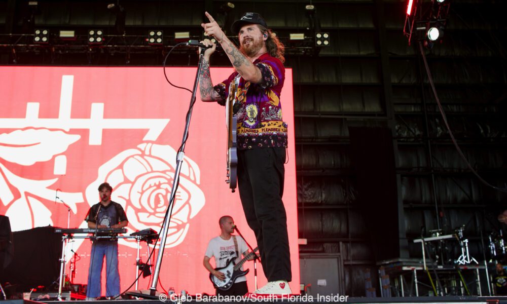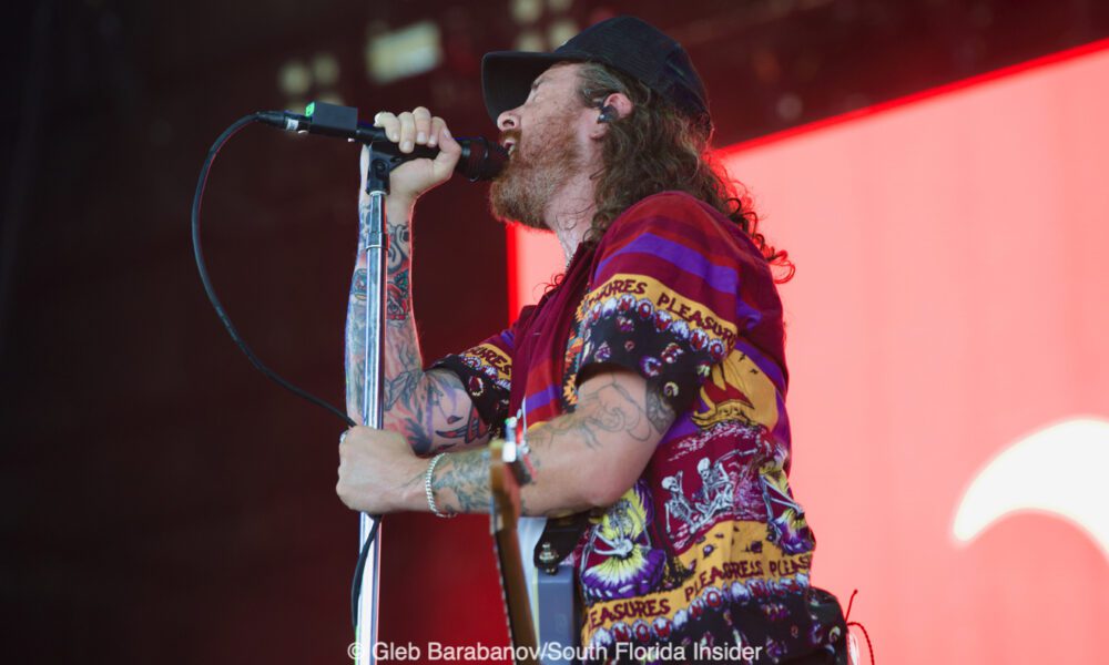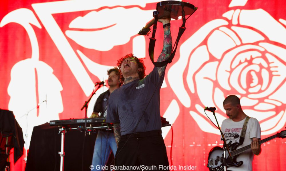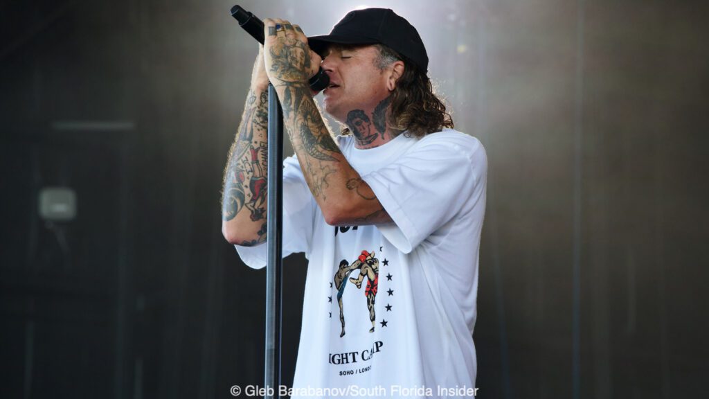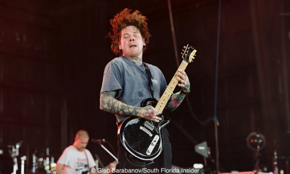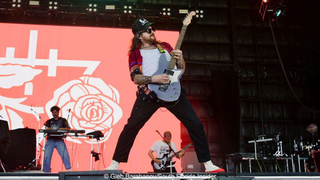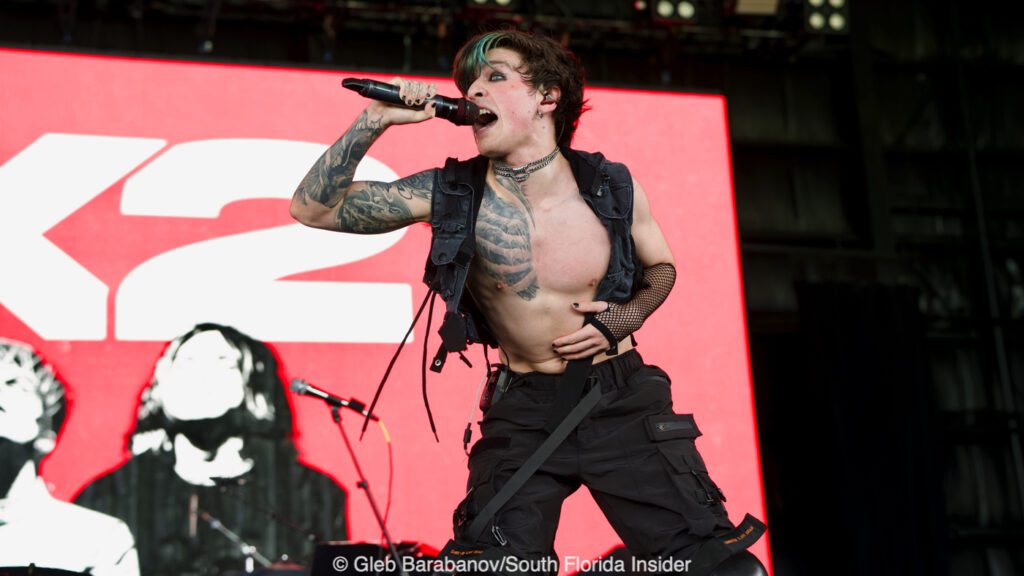 The balmy day kicked off with TX2, the rising punk-metal hybrid act known for their chaotic energy and unapologetic attitude. Frontman Timothy Evan Thomas wasted no time, diving into the crowd and screaming lyrics from “Hostage from the moshpit as fans immediately erupted into a frenzy. The band’s raw, DIY aesthetic and anthemic choruses made them the perfect opener, setting the stage for the relentless energy to come. Though their set was short, TX2 left a lasting impression, proving why they’re one of the most exciting new acts in the scene.