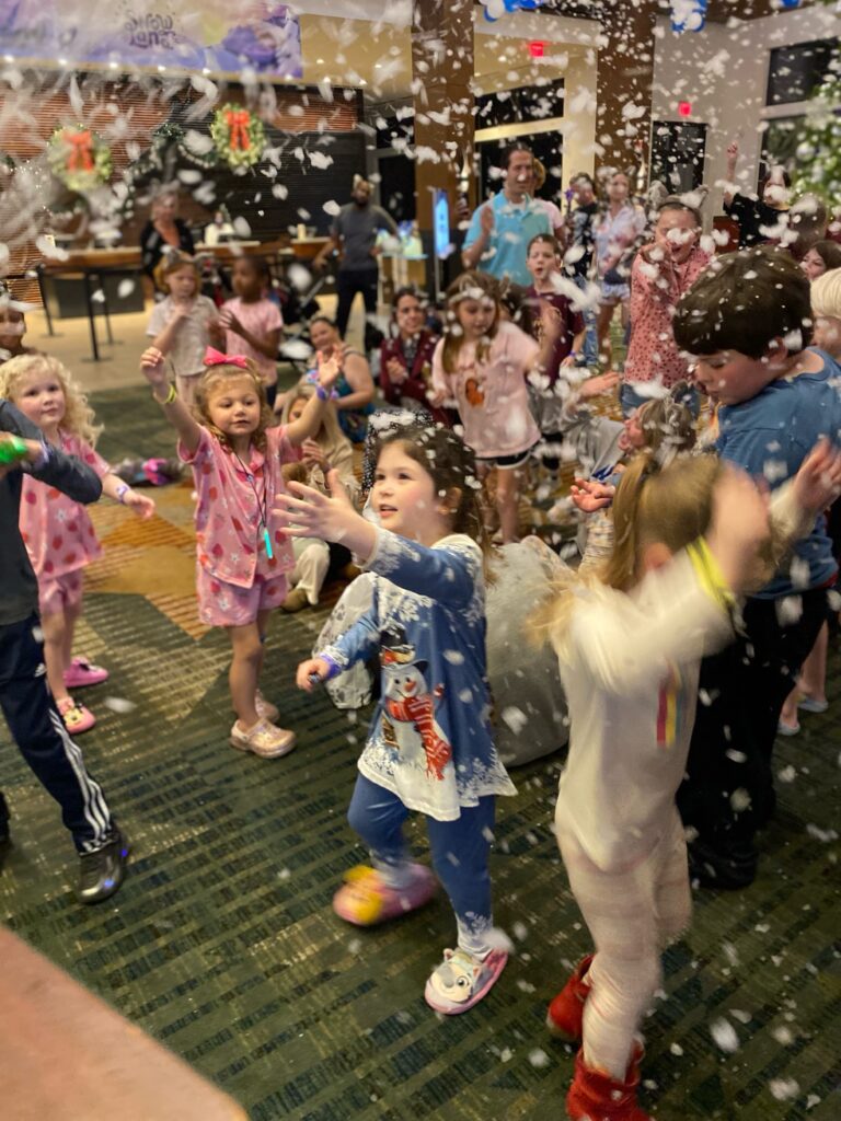 The Snowland Celebration also had fun themed games, a scavenger hunt, bingo time, yoga time, character visits, Santa visits, and my daughter’s favorite, the Frosty Fest Family Dance Party. The Great Wolf Lodge Pack Team Members led the full lobby crowd in everyone’s favorite choreographed dance songs of new and of old.