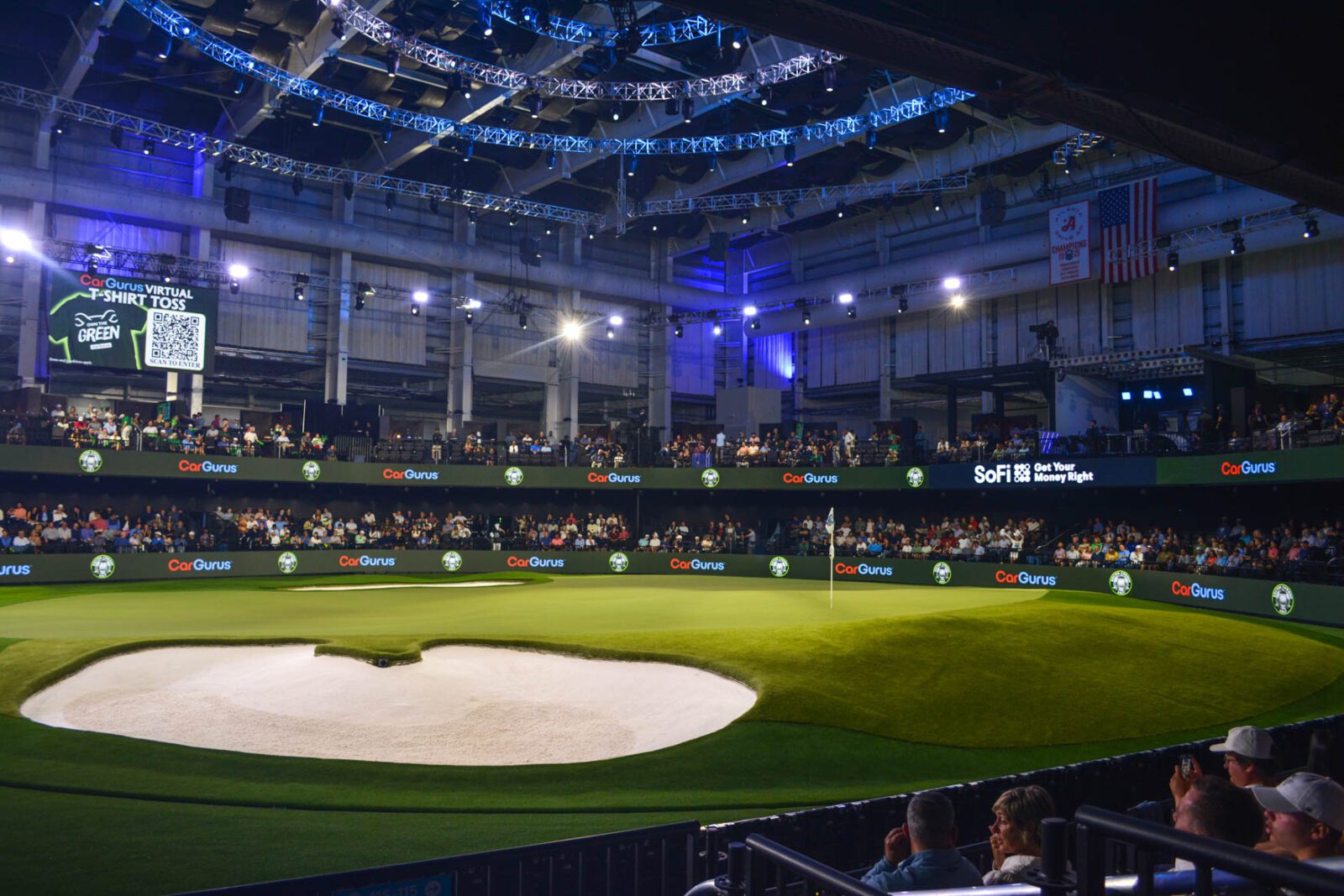 In the middle of the playing area are a tee box, a sand box and a rough box, which players shoot from depending on the result of their initial shot. On the opposite side is a large, rotatable putting green surrounded by sand traps. The hole location on the green changes between rounds, which is impressive to watch in itself. When a shot lands on or near the green, a colored light illuminates to show the ball’s exact placement. With so much happening at once and all of it exciting, TGL seems perfectly designed for today’s shorter attention spans.